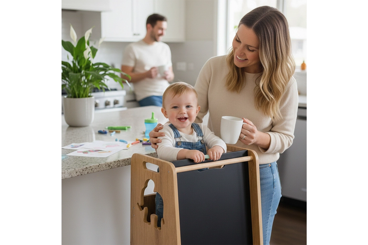 Zachęć swoje dziecko do aktywnego udziału w kuchennych zadaniach, dzięki naszemu pomocnikowi kuchennemu! To stabilne i bezpieczne podwyższenie pozwoli maluchowi z łatwością sięgnąć do blatu, umożliwiając mu wspólne gotowanie i naukę nowych umiejętności w przyjazny sposób.